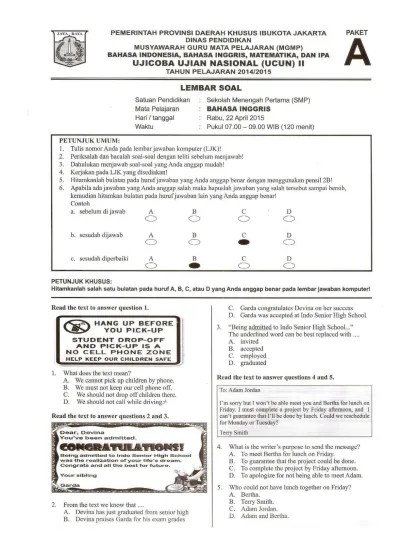 Download soal un 2019 smp/mts bahasa inggris 4 paket. Inggris smp mts terlengkap dan terbaru beserta kunci jawaban 2015. Naskah soal uji coba ujian nasional tahun pelajaran 2014/2015 dinas pendidikan dki jakarta sekedar informasi saja bahwa: Contoh soal latihan dan kunci jawaban bahasa inggris kelas 9 smp by. Soal un bahasa inggris smp 2015 dan kunci jawabannya pdf.